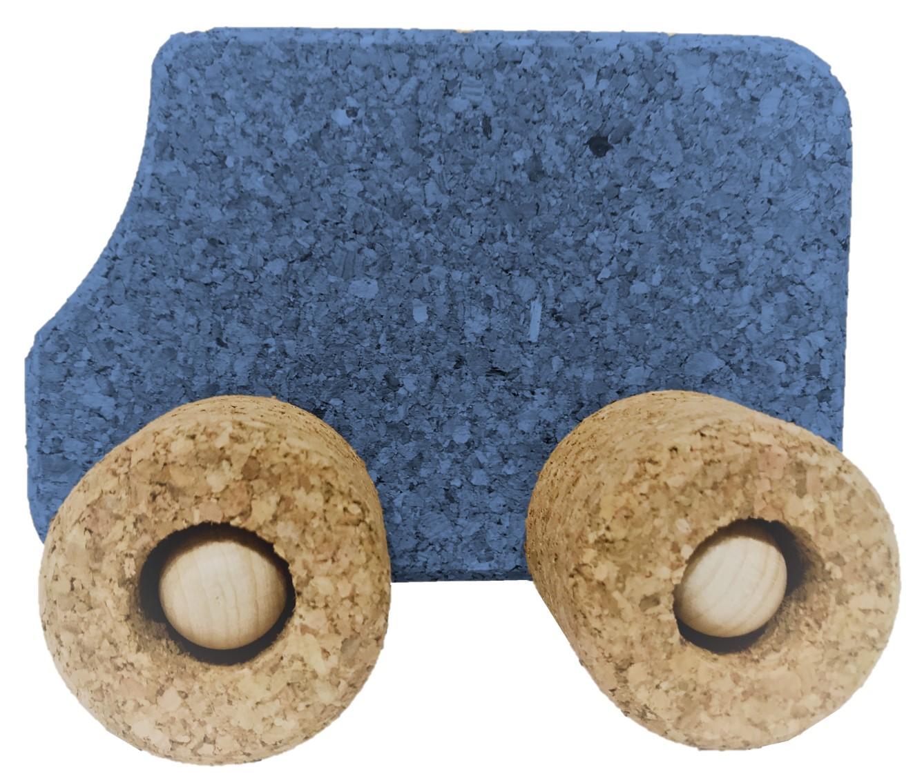 Material: Vehikle KORXX Kork, Räder KORXX Kork, Achsen aus Holz, nicht für Wasser geeignet, Dimension 12 cm x 9 cm x 6 cm