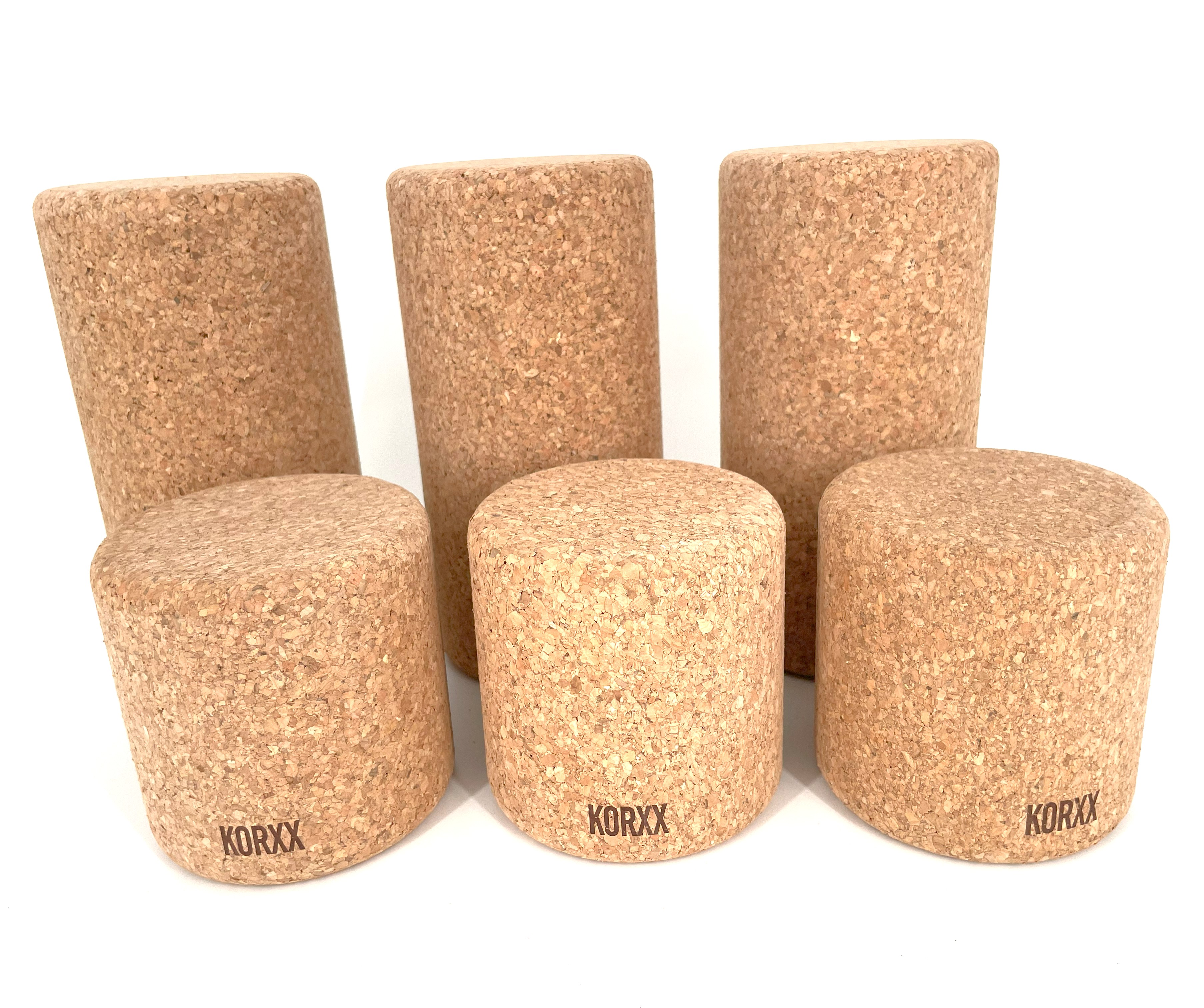 Alle KORXX Kork Bausteine können miteinander kombiniert werden; die Steine der Brickle-Serie (Mini-Variante für den mobilen Einsatz) sowie die Big Blocks (XL-Bauklötze) besitzen jedoch eine andere Größe.