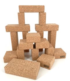 Leicht, weich, leise und stabil: Das sind die minimalistischen Bauklötze von KORXX. Sie bestehen zu 100% aus gepresstem Korkgranulat, das aus nachwachsenden Hölzern in einer nachhaltigen Waldwirtschaft produziert wird. Durch die besondere Oberfläche haften die Klötze hervorragend aneinander und ermöglichen so stabile Konstruktionen ohne Verrutschen. Das freie Kreieren von Strukturen fördert Kreativität und Vorstellungsvermögen und schafft Selbstvertrauen durch positive Erfolgserlebnisse.