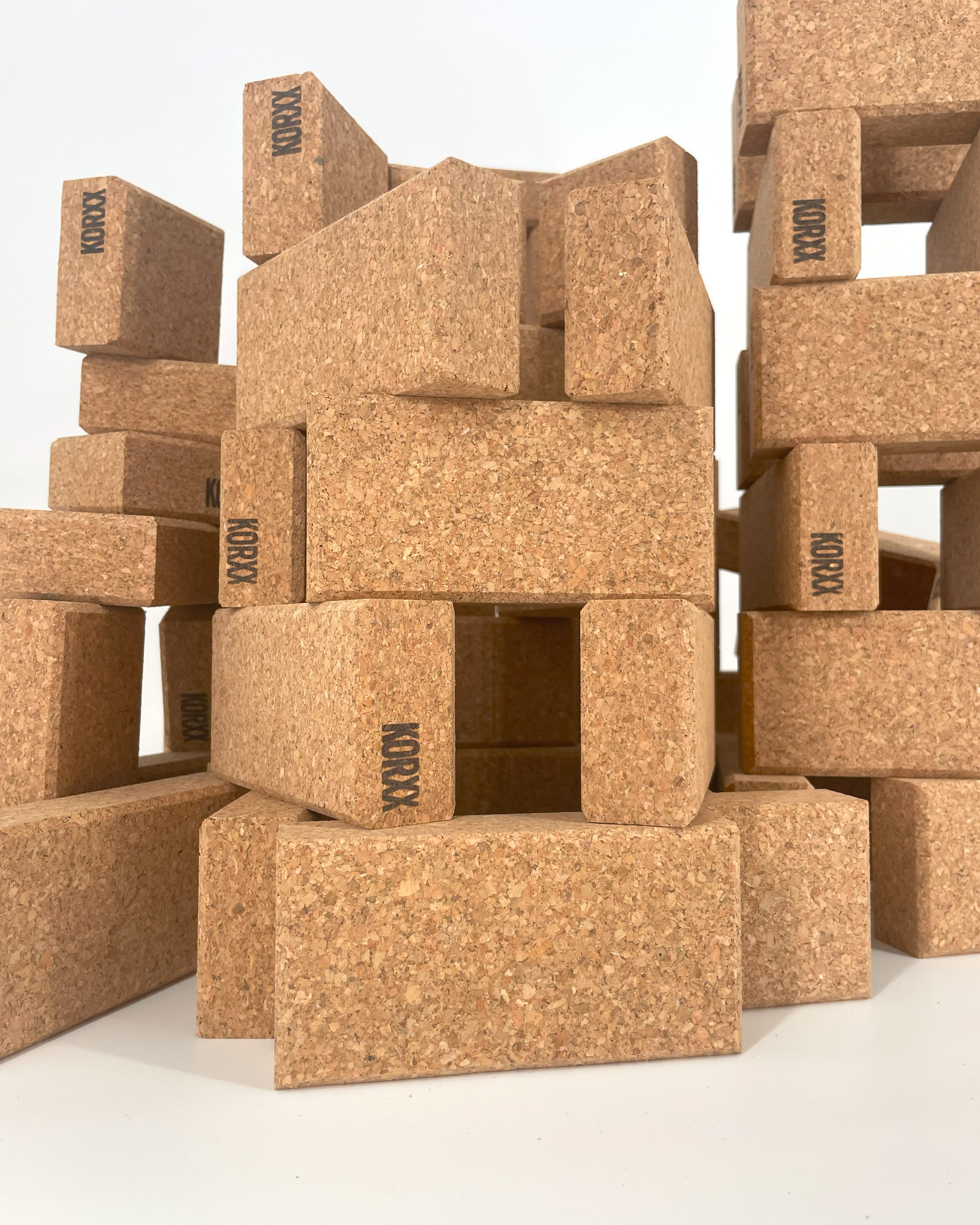 Leicht, weich, leise und stabil: Das sind die minimalistischen Bauklötze von KORXX. Sie bestehen zu 100% aus gepresstem Korkgranulat, das aus nachwachsenden Hölzern in einer nachhaltigen Waldwirtschaft produziert wird. Durch die besondere Oberfläche haften die Klötze hervorragend aneinander und ermöglichen so stabile Konstruktionen ohne Verrutschen. Das freie Kreieren von Strukturen fördert Kreativität und Vorstellungsvermögen und schafft Selbstvertrauen durch positive Erfolgserlebnisse. Die KORXX-Bauklötze sind anti-allergen und bergen aufgrund ihres Gewichtes ein geringeres Verletzungsrisiko, so dass bereits kleinste Kinder ab dem zweiten Lebensjahr mit ihnen spielen können.