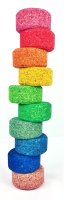 • 10 runde Bausteine, 6 cm Duchmesser, 3 cm hoch in 10 unterschiedlichen Farben