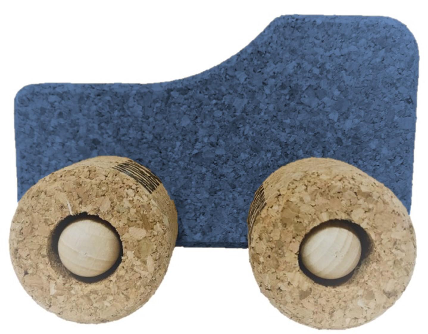 Material: Vehikle KORXX Kork, Räder KORXX Kork, Achsen aus Holz, nicht für Wasser geeignet, Dimension 12 cm x 9 cm x 6 cm